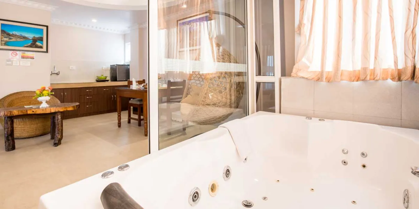 The room equipped with Jacuzzi, mini kitchen and larger space along with all modern interiors would definitely, enhanced the accommodation experience. Kuti Resort offers the feeling of natural intimacy and warmth of Nepalese hospitality.